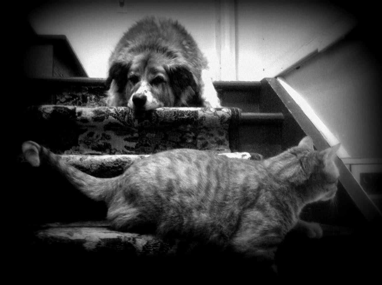 Our new house with one staircase to the 2nd floor? Is the cat equivalent to the local mall. Our three beasts loiter for days upon these stairs. They stretch, they ‘downward dog,’ they make it their day’s work to create peril where once there was none.